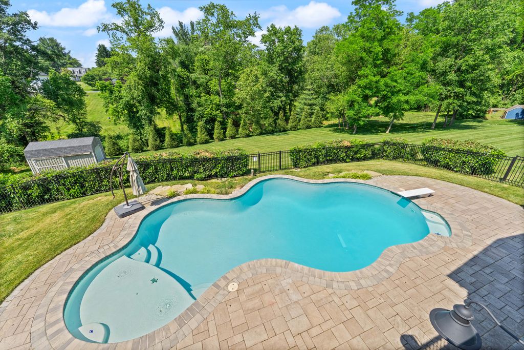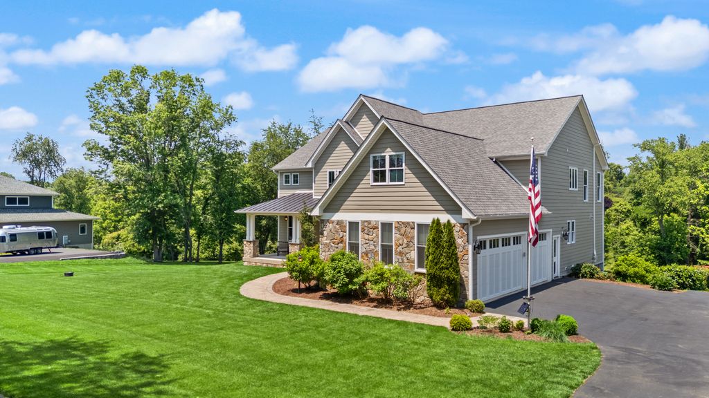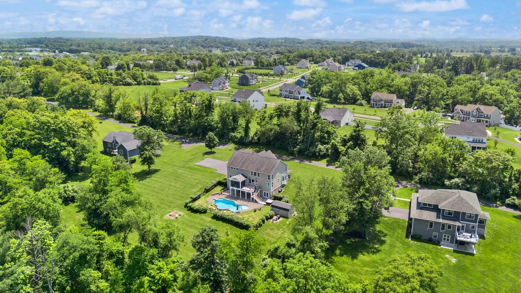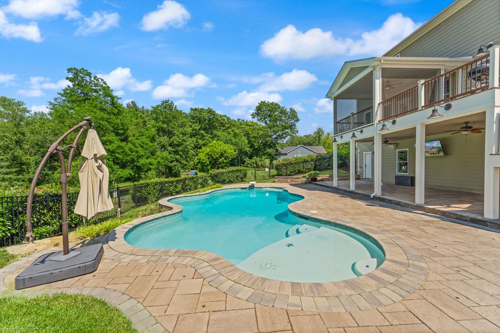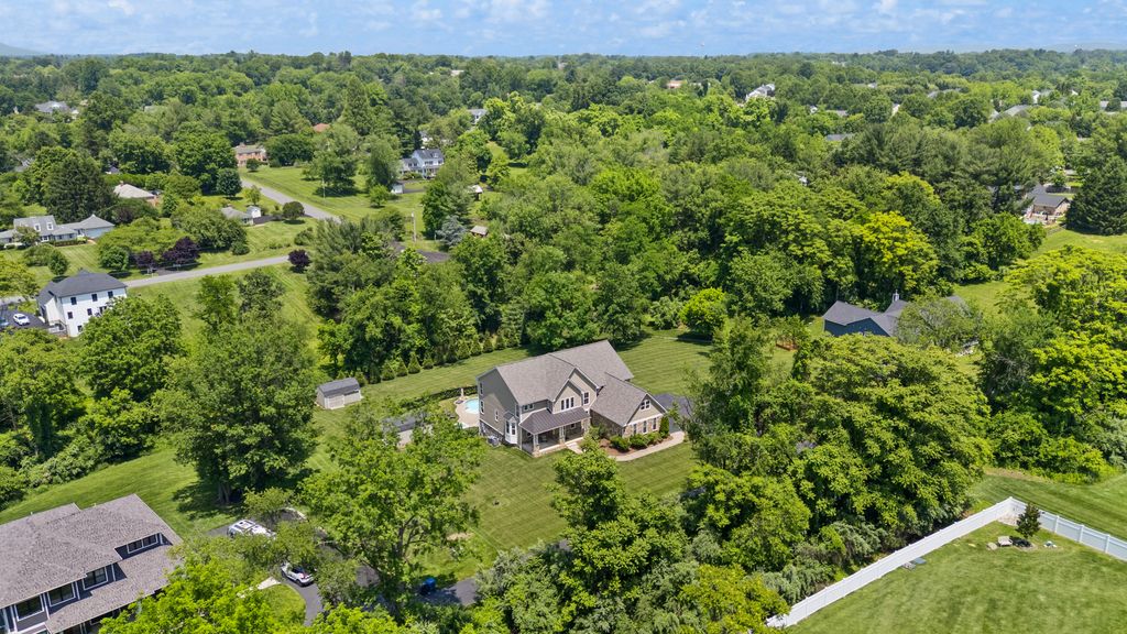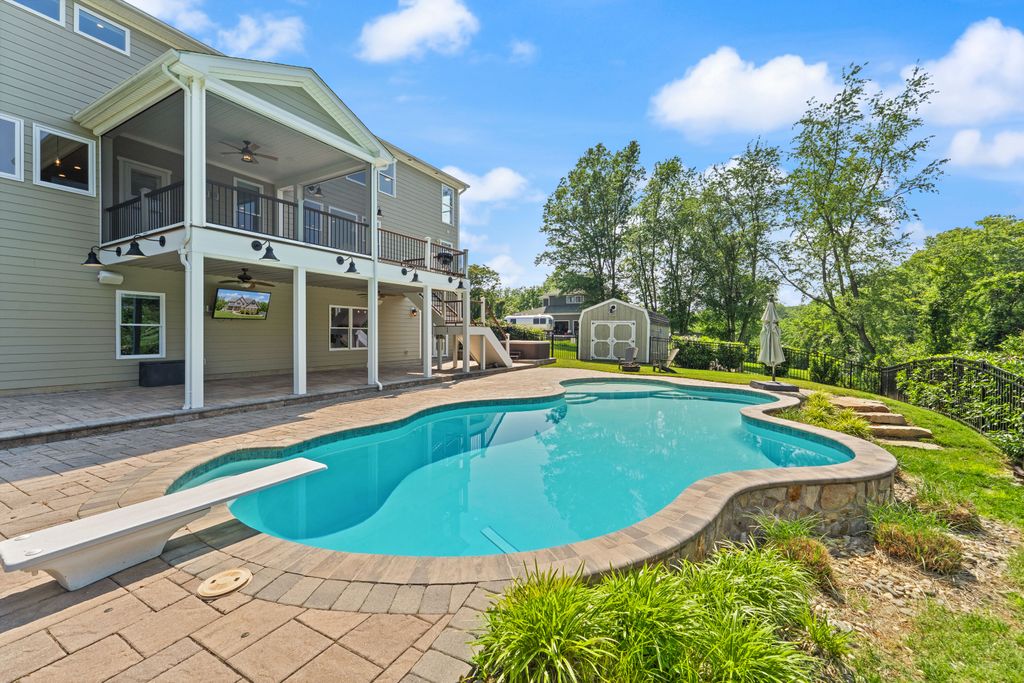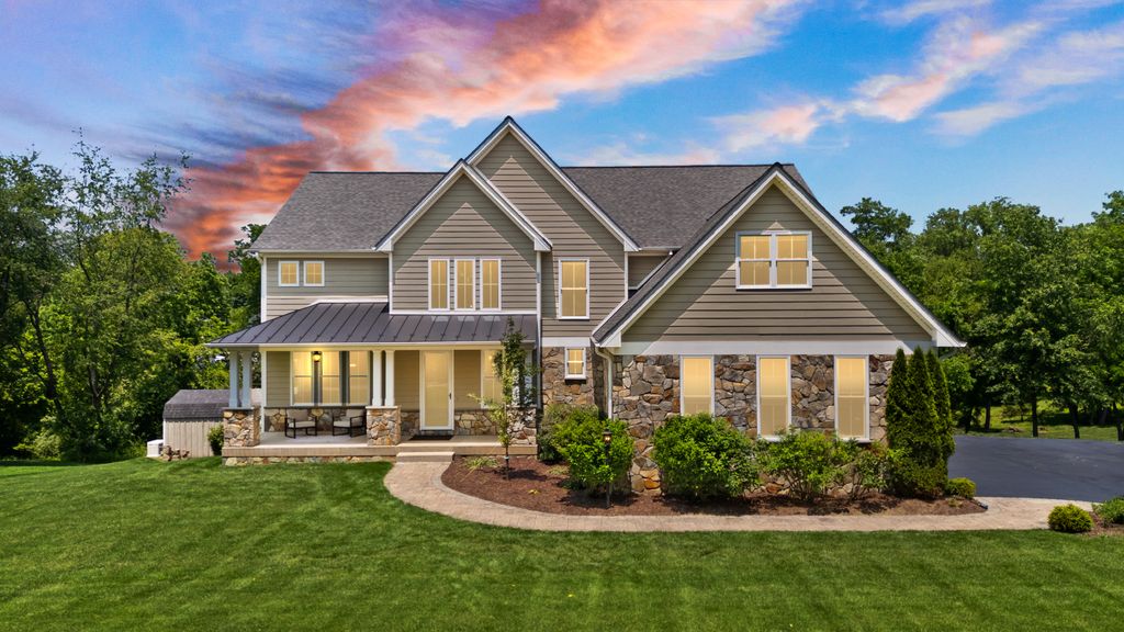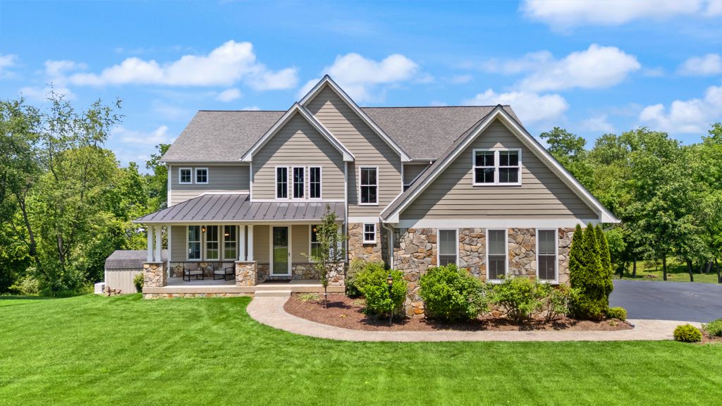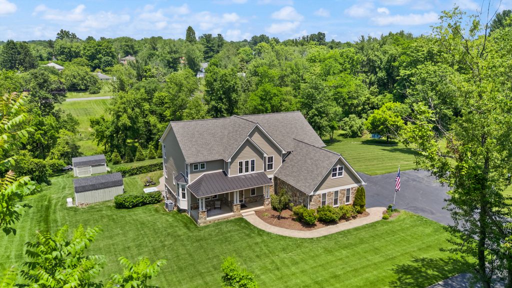 This beautifully maintained home offers spacious living and incredible custom home features throughout. Main level boasts a 2-story foyer, exotic pecan hardwood floors, formal flex room, private home office, and a mudroom off the oversized 3 car sideload garage. The gourmet kitchen features stainless steel appliances, natural stone countertops, a large island, breakfast bar, double wall oven, and an impressive walk-in pantry with prep area that is perfect for entertaining. Upstairs, the expansive owner’s suite includes a sitting room, spa-like bath, and a huge walk-in closet. Three additional bedrooms all have their own private ensuite bath. Finished lower level includes an in law suite with bedroom, full bath, great room, game area, and kitchenette. Enjoy the seasons in style with a private in ground saltwater pool, hot tub, and spacious patio. Off the main living area is a spacious Trex deck with a covered and screened in section. Two storage buildings and a large turnaround driveway provide plenty of parking and space. This home offers the perfect blend of luxury, functionality, and location.