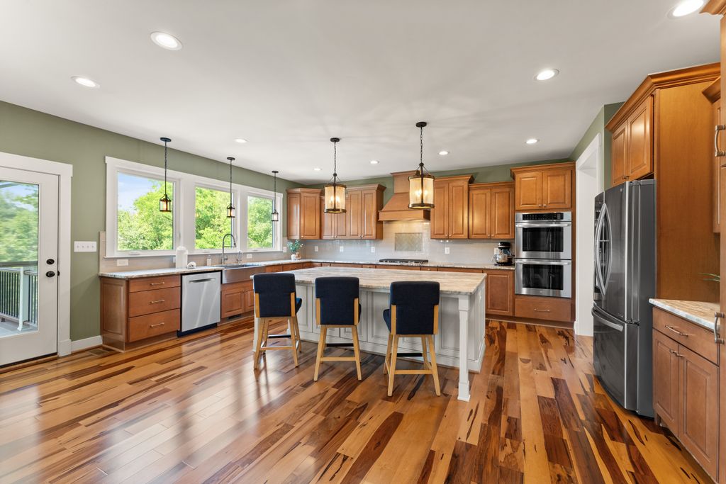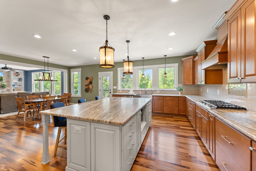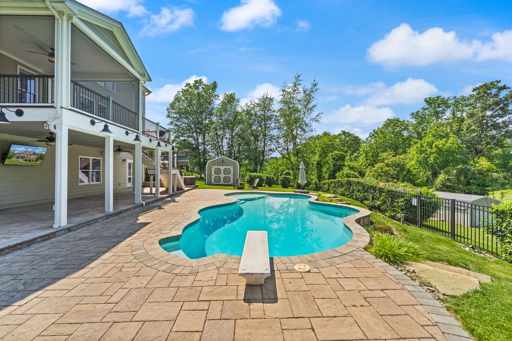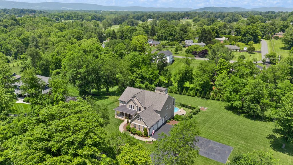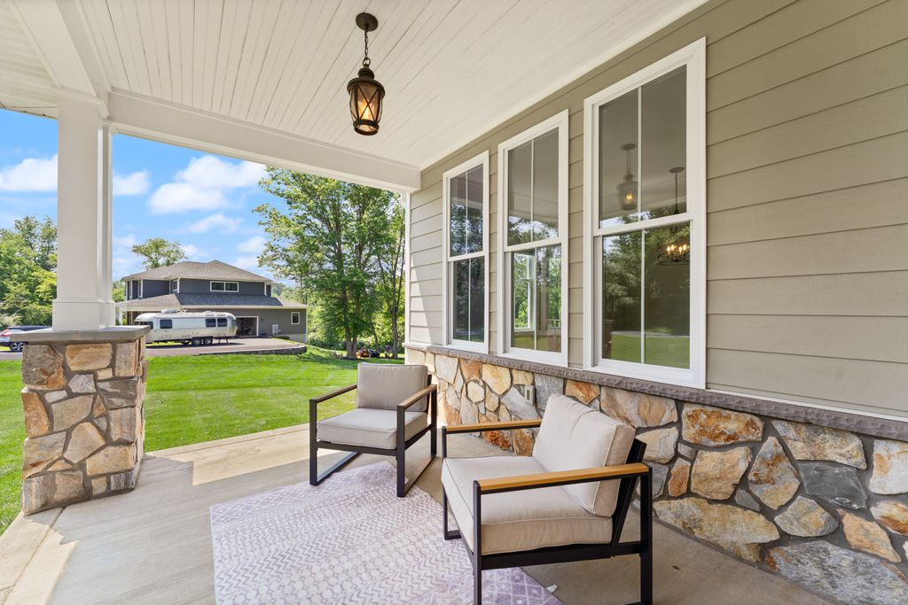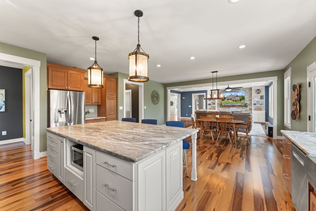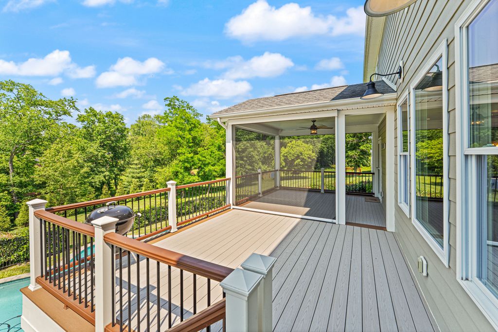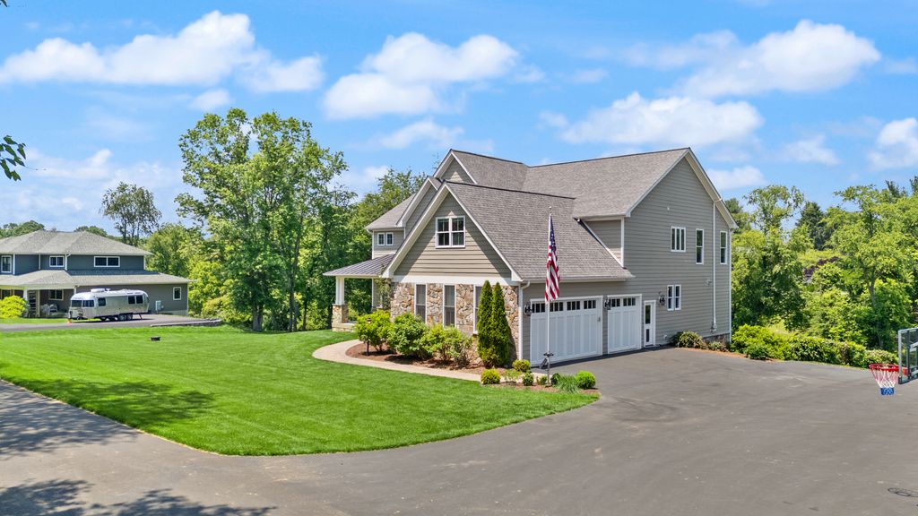 This beautifully maintained home offers spacious living and incredible custom home features throughout. Main level boasts a 2-story foyer, exotic pecan hardwood floors, formal flex room, private home office, and a mudroom off the oversized 3 car sideload garage. The gourmet kitchen features stainless steel appliances, natural stone countertops, a large island, breakfast bar, double wall oven, and an impressive walk-in pantry with prep area that is perfect for entertaining. Upstairs, the expansive owner’s suite includes a sitting room, spa-like bath, and a huge walk-in closet. Three additional bedrooms all have their own private ensuite bath. Finished lower level includes an in law suite with bedroom, full bath, great room, game area, and kitchenette. Enjoy the seasons in style with a private in ground saltwater pool, hot tub, and spacious patio. Off the main living area is a spacious Trex deck with a covered and screened in section. Two storage buildings and a large turnaround driveway provide plenty of parking and space. This home offers the perfect blend of luxury, functionality, and location.