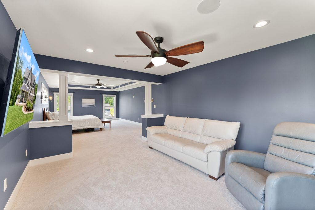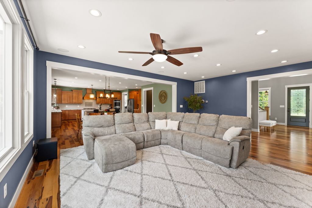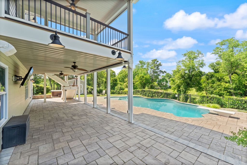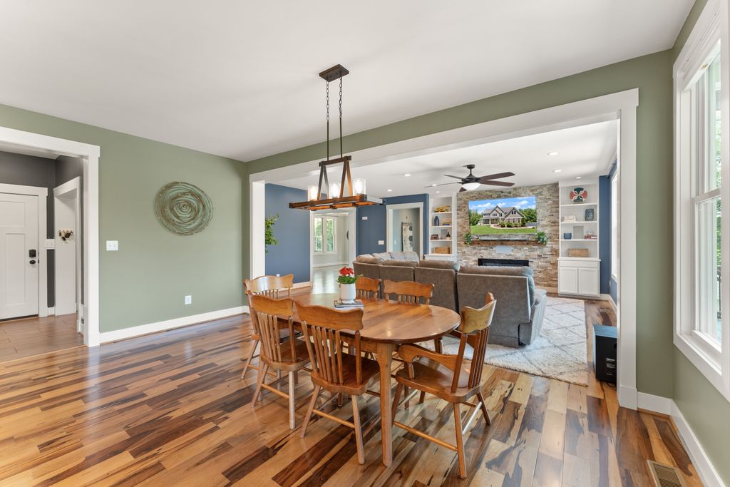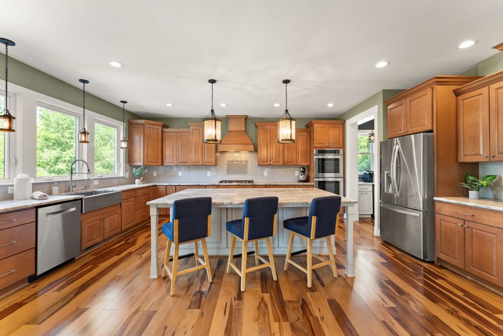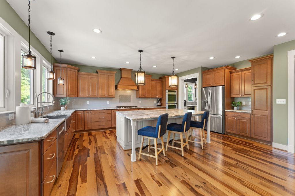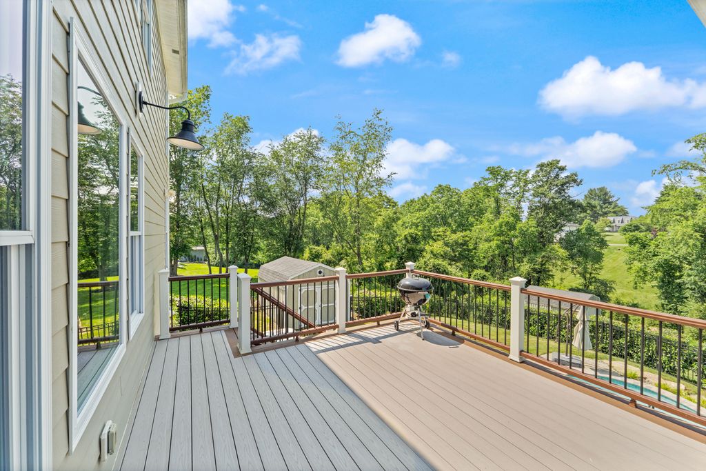 This beautifully maintained home offers spacious living and incredible custom home features throughout. Main level boasts a 2-story foyer, exotic pecan hardwood floors, formal flex room, private home office, and a mudroom off the oversized 3 car sideload garage. The gourmet kitchen features stainless steel appliances, natural stone countertops, a large island, breakfast bar, double wall oven, and an impressive walk-in pantry with prep area that is perfect for entertaining. Upstairs, the expansive owner’s suite includes a sitting room, spa-like bath, and a huge walk-in closet. Three additional bedrooms all have their own private ensuite bath. Finished lower level includes an in law suite with bedroom, full bath, great room, game area, and kitchenette. Enjoy the seasons in style with a private in ground saltwater pool, hot tub, and spacious patio. Off the main living area is a spacious Trex deck with a covered and screened in section. Two storage buildings and a large turnaround driveway provide plenty of parking and space. This home offers the perfect blend of luxury, functionality, and location.