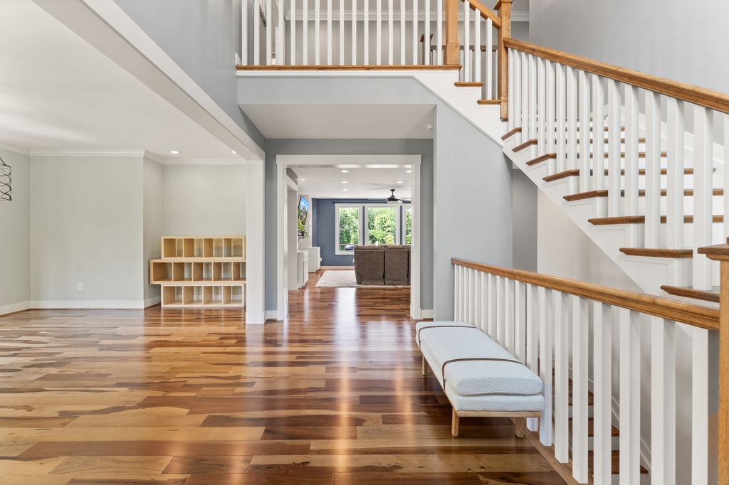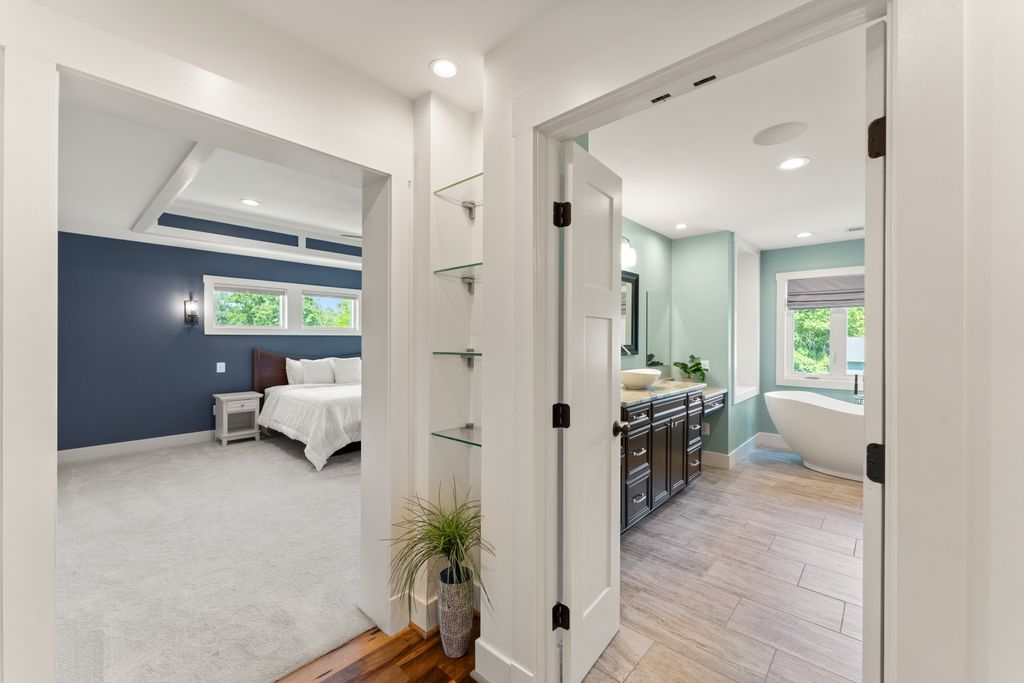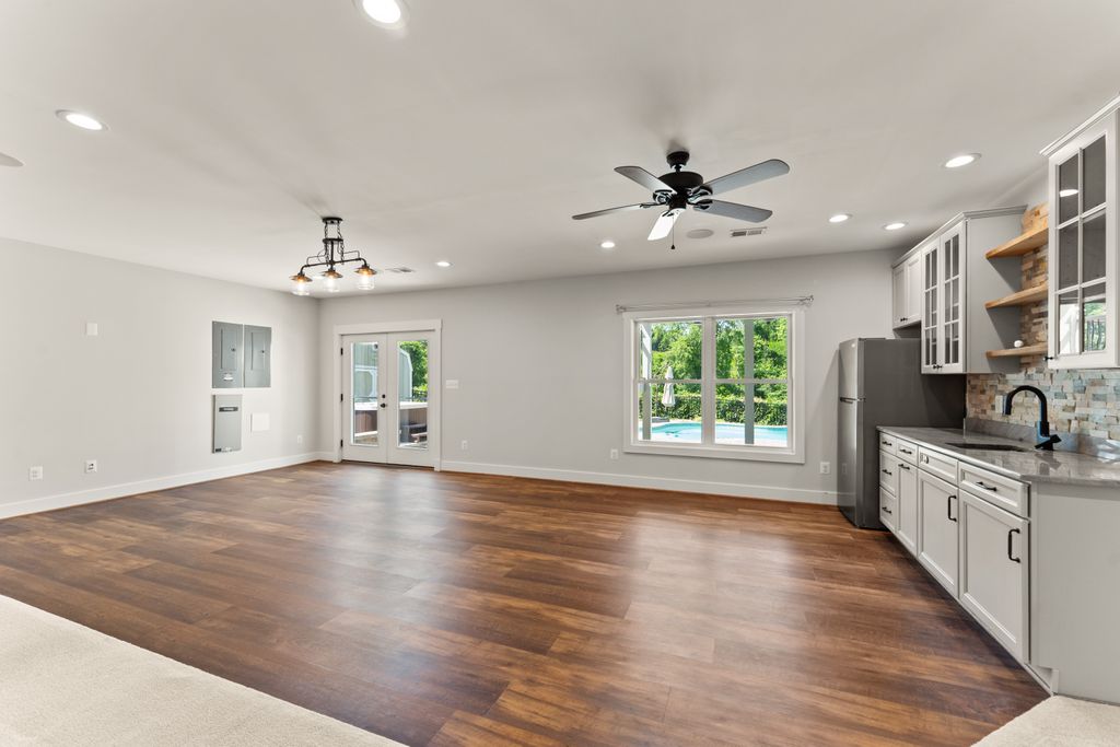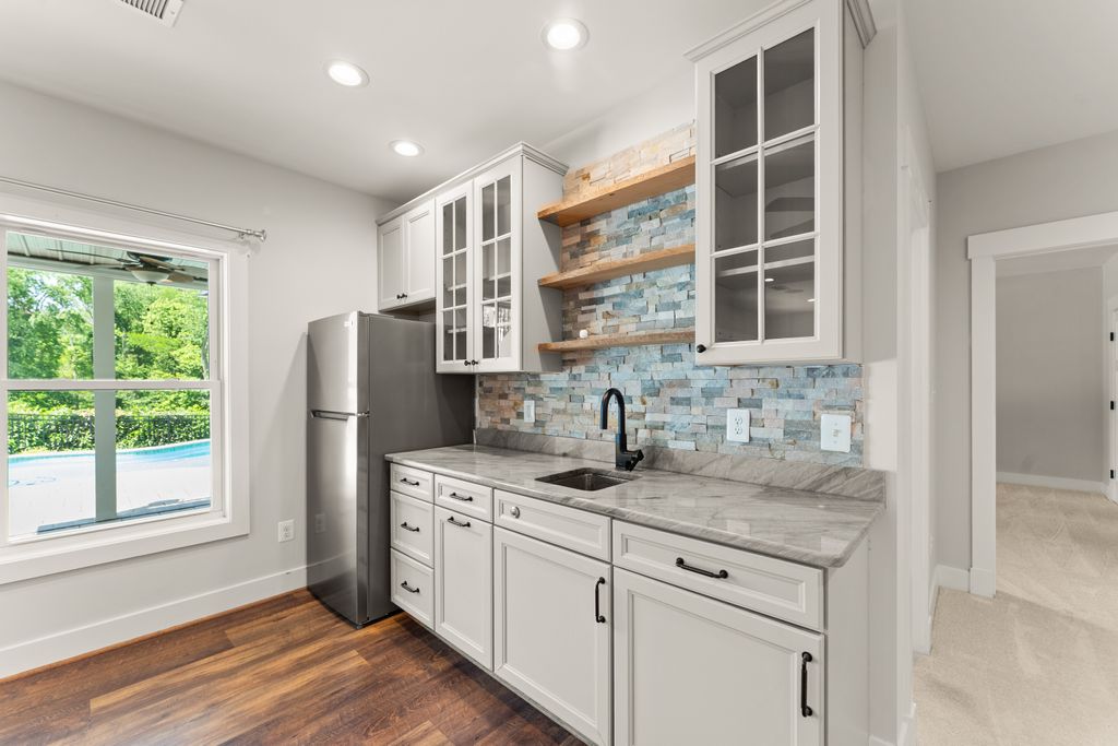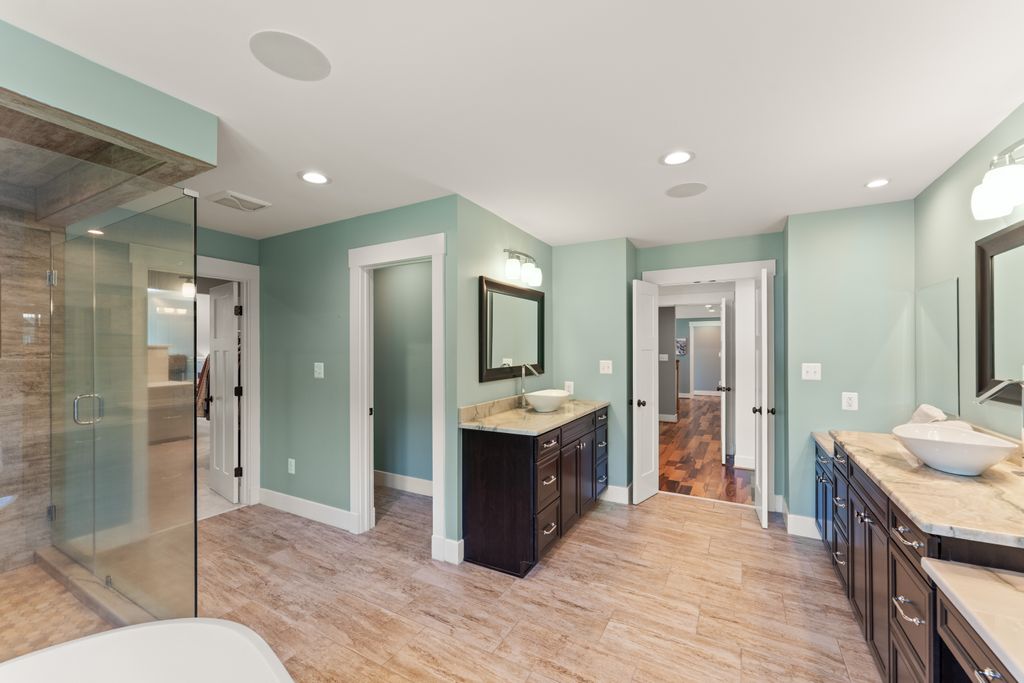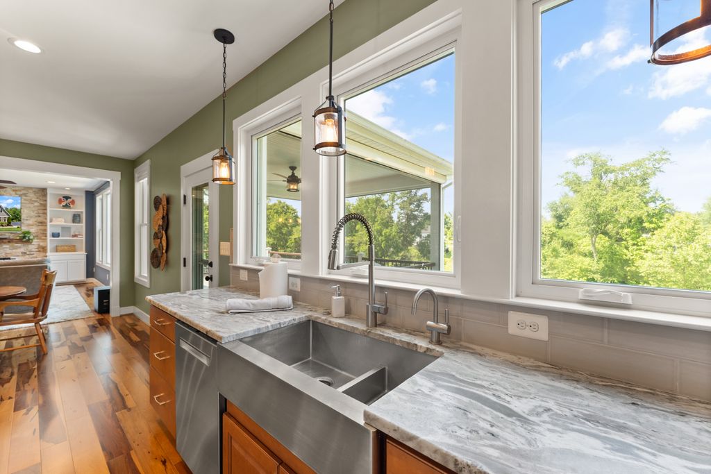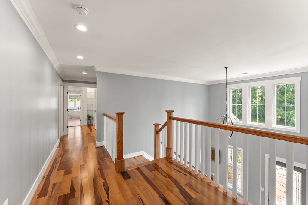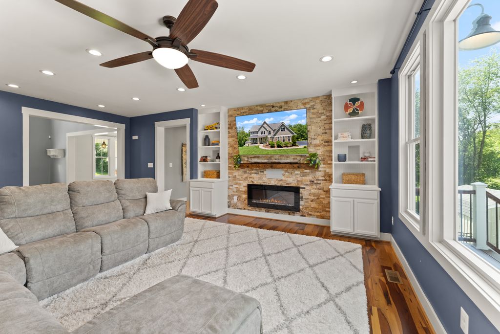 This beautifully maintained home offers spacious living and incredible custom home features throughout. Main level boasts a 2-story foyer, exotic pecan hardwood floors, formal flex room, private home office, and a mudroom off the oversized 3 car sideload garage. The gourmet kitchen features stainless steel appliances, natural stone countertops, a large island, breakfast bar, double wall oven, and an impressive walk-in pantry with prep area that is perfect for entertaining. Upstairs, the expansive owner’s suite includes a sitting room, spa-like bath, and a huge walk-in closet. Three additional bedrooms all have their own private ensuite bath. Finished lower level includes an in law suite with bedroom, full bath, great room, game area, and kitchenette. Enjoy the seasons in style with a private in ground saltwater pool, hot tub, and spacious patio. Off the main living area is a spacious Trex deck with a covered and screened in section. Two storage buildings and a large turnaround driveway provide plenty of parking and space. This home offers the perfect blend of luxury, functionality, and location.
